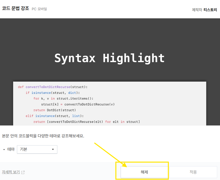 설정 > 플러그인 섹션 > 코드 문법 강조 사용중 해제
