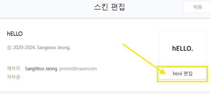 설정 > 꾸미기 > 스킨 편집 > html 편집