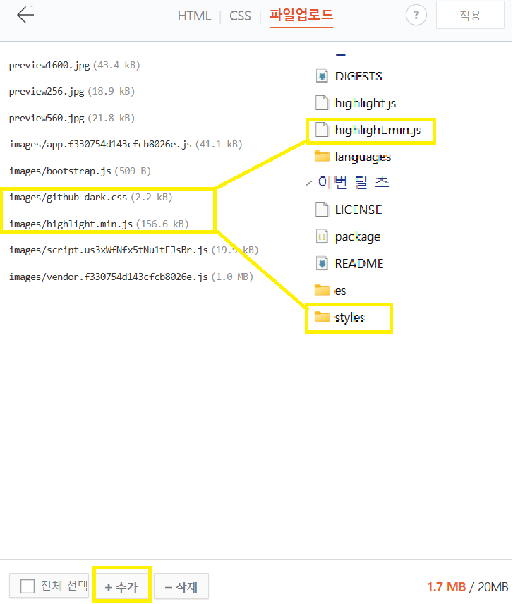 <link rel="stylesheet" href="./images/적용하고싶은 테마 이름.min.css">